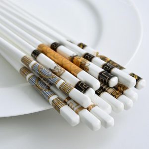 Ceramic chopsticks, fired at high temperature, using the process of overglaze color, a variety of patterns can be selected, the chopsticks are easy to clean and not moldy. The chopsticks are finely polished, feel smooth, fit and easy to clamp, and feel comfortable.