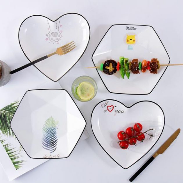 Material: Ceramic Size: 22 * 22cm (love model), 21 * 23cm (diamond model) Shape: Love, diamond Pattern: Landscape, Cartoon Color: White Process: Glaze color, stroke process Application: microwave oven, sterilizer, oven, dishwasher, etc. Exquisite patterns, cute and fresh, increase the diversity of the plate. The hand-drawn lines add a sense of fashion and a stylish…