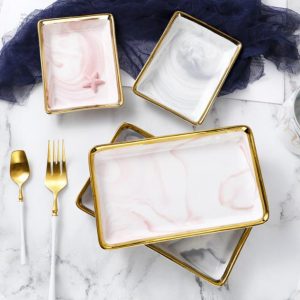Phnom Penh marble plate, high-quality raw materials and strict craftsmanship, do not stick to tradition, do not follow the flow. Marble texture, natural texture, smooth texture, full texture, handicap with gold rim, full of personality. The porcelain is delicate, the glaze is smooth, the luster is beautiful, and the texture is unique.