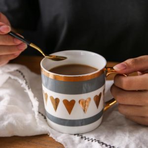 It is made of reinforced porcelain material, the porcelain is hard and firm, and the gold painting process is exquisite and delicate, with no texture. Love, stars, and Love patterns are lively and playful, full of fashion sense, and are good for milk and coffee.